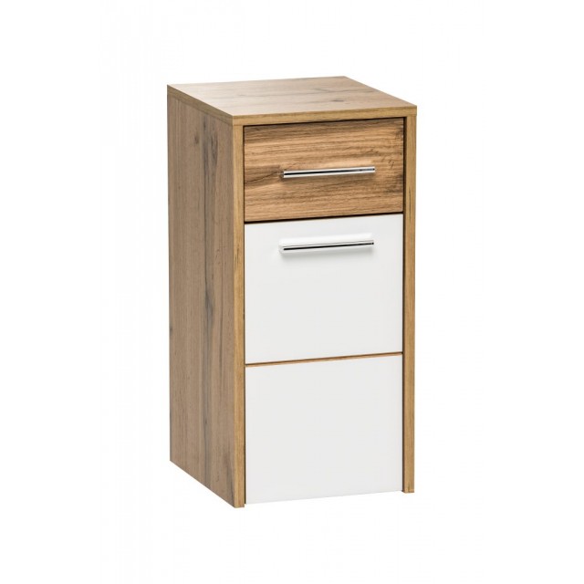 Pagaminta iš kokybiškos medžio dulkių plokštės (MDF), atsparios drėgmei. Spalva balta suteikia švaros ir erdvės pojūtį, todėl spintelę lengva derinti prie įvairaus vonios kambario interjero.