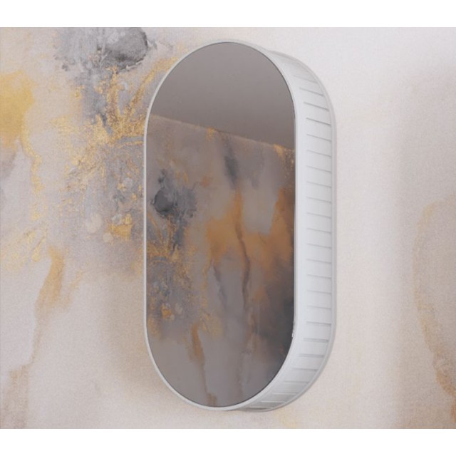 Vonios spintelė VENEZIA-SLU – elegantiška ir funkcionali pakabinama spintelė su veidrodinėmis durėlėmis. Ovalo forma suteikia baldui švelnų, modernų dizainą, puikiai derantį prie įvairių vonios kambario interjerų.