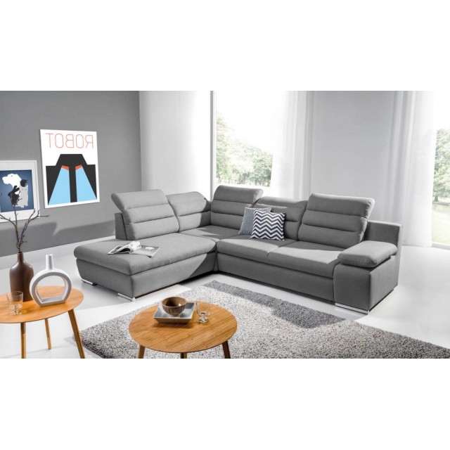 GRECO - šiuolaikinio dizaino minkštas kampas su reguliuojamais galvūgaliais, kuris Jūsų kasdienybėje leis mėgautis aukščiausiu komfortu. Penkios nepriklausomos galvos atramos individualiai fiksuojamos skirtingose padėtyse! GRECO tiks net ir nedidelėje svetainėje - baldas turi be didelių pastangų išskleidžiamą miegamą mechanizmą ir erdvią, patogią naudojimui patalynės dėžę. Chromuoto metalo kojelės, tai subtili detalė, pabrėžianti modernų baldo dizainą.