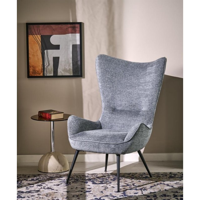 Stilingas fotelis ant tvirtų metalinių kojelių, suteikiantis stabilumą ir eleganciją bet kuriai erdvei. Minkštas porolono užpildas užtikrina komfortą ilgesnio sėdėjimo metu. Aukštos kokybės baldinis audinys atsparus kasdieniam naudojimui ir patogus valymui. Maksimali apkrova – 100 kg, todėl fotelis tinkamas daugeliui vartotojų.