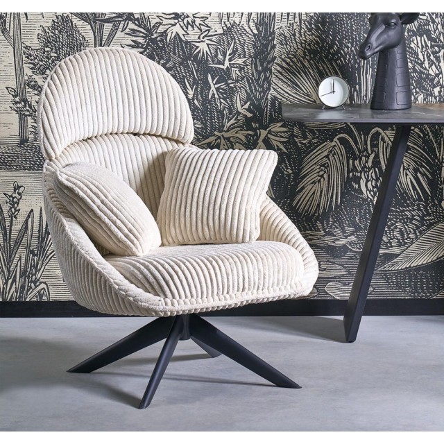 Sukamasis fotelis, skirtas patogiam ir lengvam atsipalaidavimui. Sėdima dalis iš porolono užtikrina minkštumą ir komfortą kiekvienam sėdinčiajam. Apmušalas – kokybiškas baldinis audinys, o tvirtas metalinis rėmas garantuoja stabilumą ir ilgaamžiškumą. Fotelis turi 360° sukimosi funkciją, leidžiančią lengvai keisti sėdėjimo padėtį ir patogiai pasukti fotelį norima kryptimi. Maksimali apkrova – 100kg, o sėdimos dalies aukštis – 45cm.